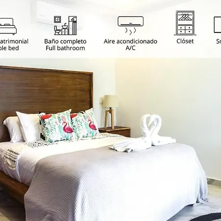 HostPal Luxury Studio in Playa del Carmen Appartamento, di 69 m^2, si trova a 4 km dalla Chiesa di Guadalupe e offre un patio soleggiato con una piscina. Ci vogliono 20 minuti di auto da quest'appartamento all'aeroporto di Playa del Carmen.